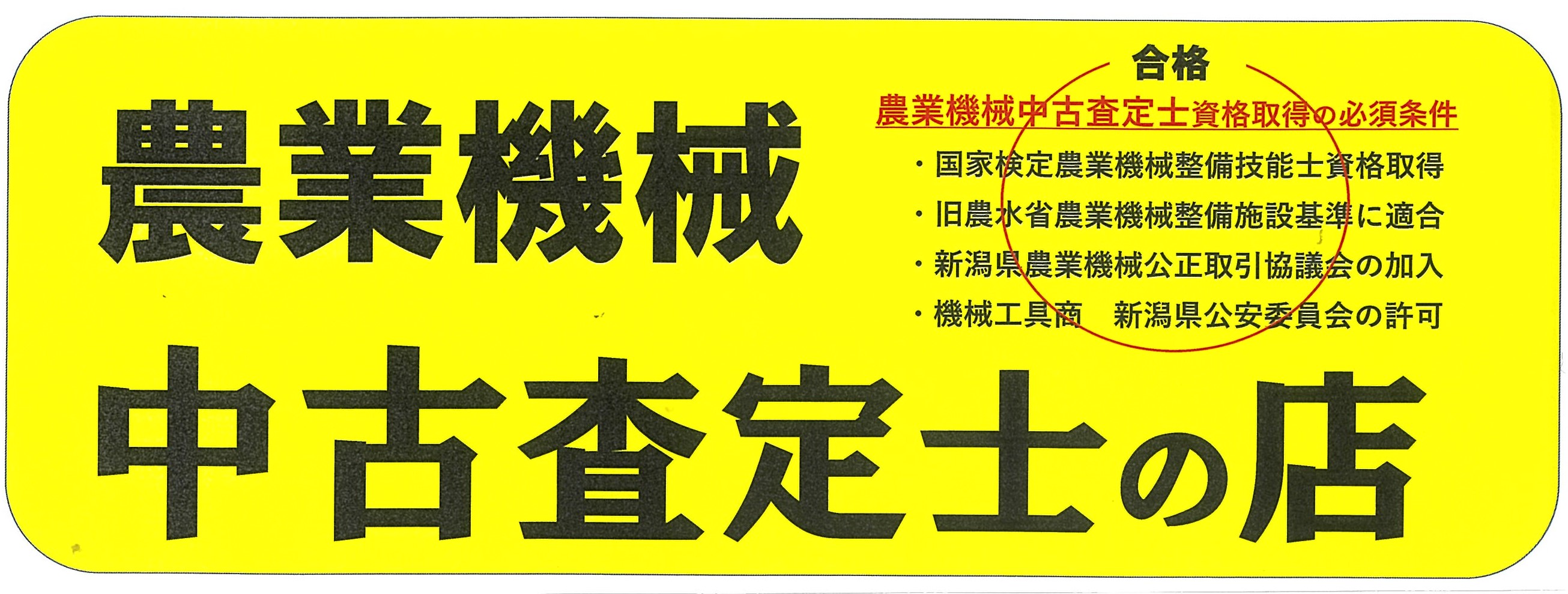 そういう状況下において私たちは、一般社団法人日本機械化協会の行っている中古農業機械査定士制度を導入し、農業者の皆様が安心して中古農機の売買を任せられる農機販売店を目指し、