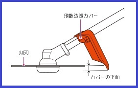 飛散防護カバーを刈刃から離したり、外して使用すると、飛散物の防護効果が無くなります。必ず所定の位置にしっかり取り付けて下さい。